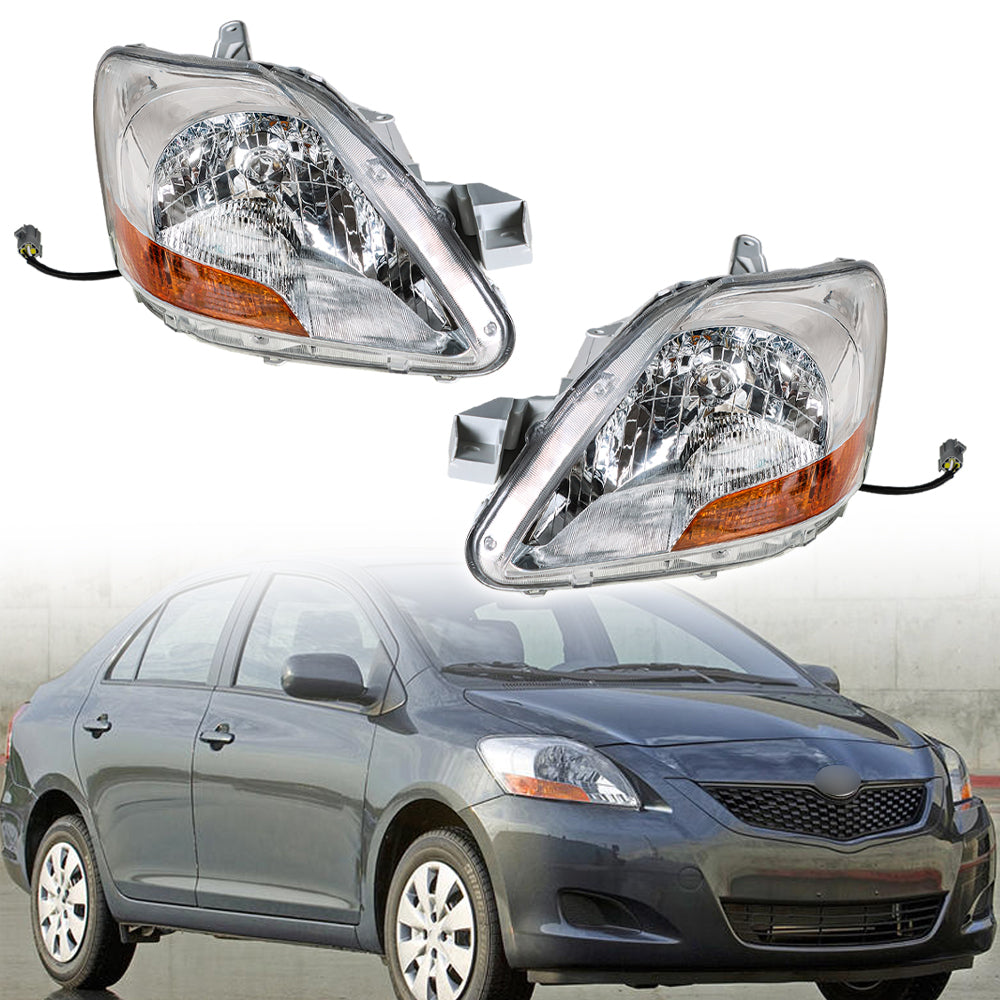 Fit For 2007-2011 Toyota Yaris Sedan Left and Right 2Pc Clear Lens Headlight Set
